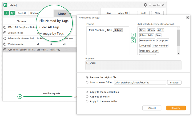 To have full control of your music library and audio files, you need to have accurately formatted names and a neat folder hierarchy. TidyTag allows you to