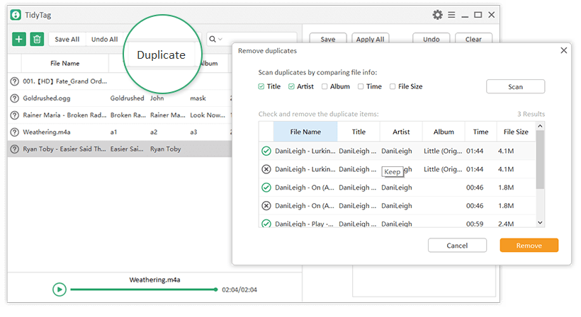 Getting tired of duplicated audio files which occupy much hard drive space, but it's time-saving for us to remove duplicates mannually. Tidytag helps to